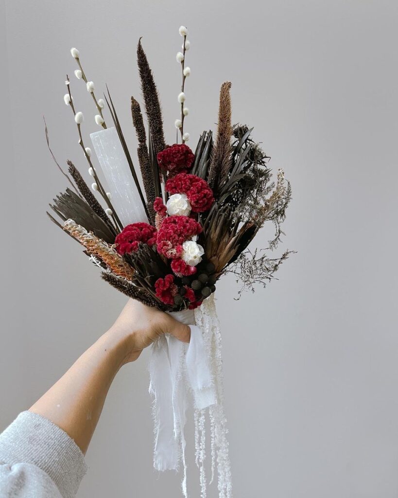 Another trend that’s turning heads is the incorporation of crystals and ornamental pendants into bouquets. From sparkling quartz to vintage brooches, these accents add a touch of elegance and personal significance. Whether it’s a family heirloom or a crystal chosen for its meaning, these pieces give bouquets a unique and memorable flair.